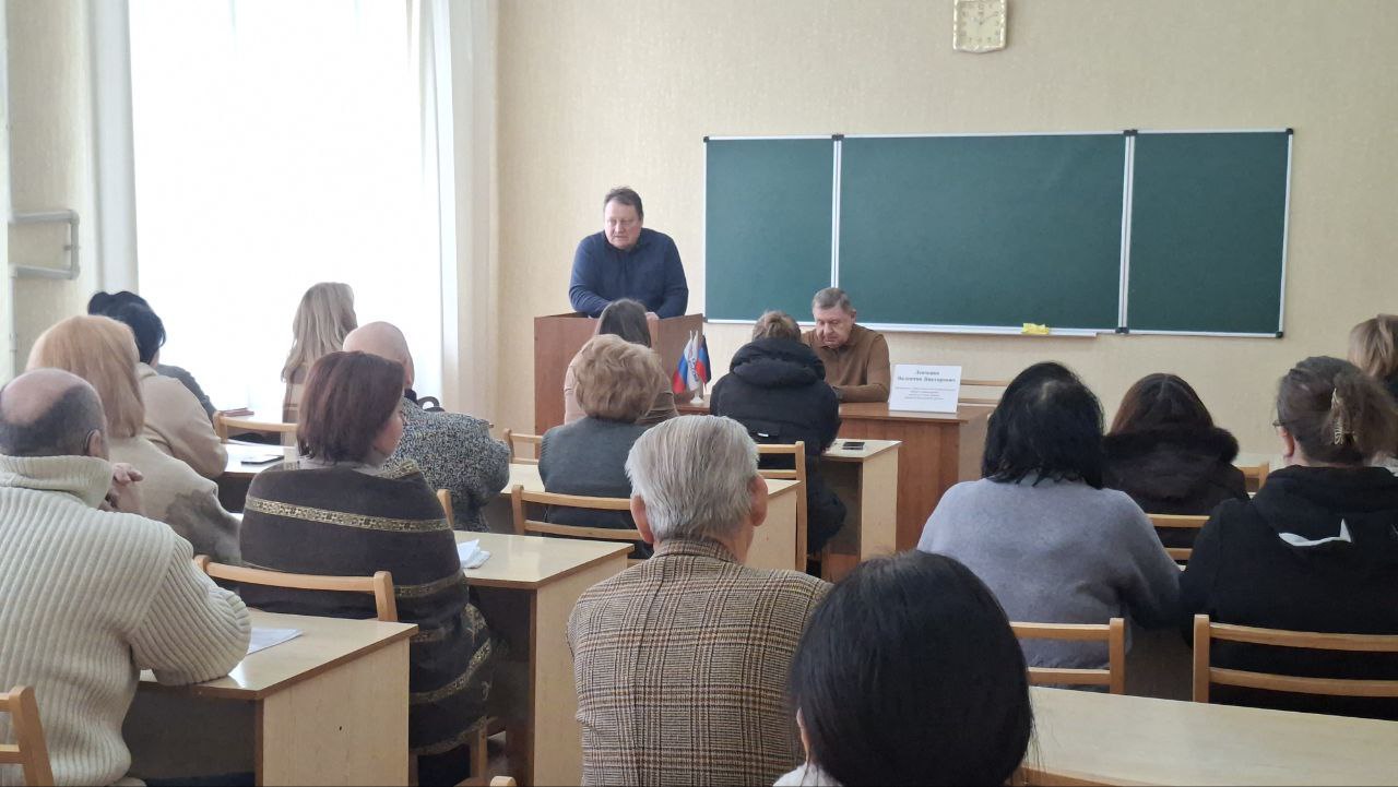 Совместно с руководителем управы Киевского внутригородского района Левченко Валентином Викторовичем провели встречу с трудовым коллективом Донецкого экономико-правового техникума имени Баллина.