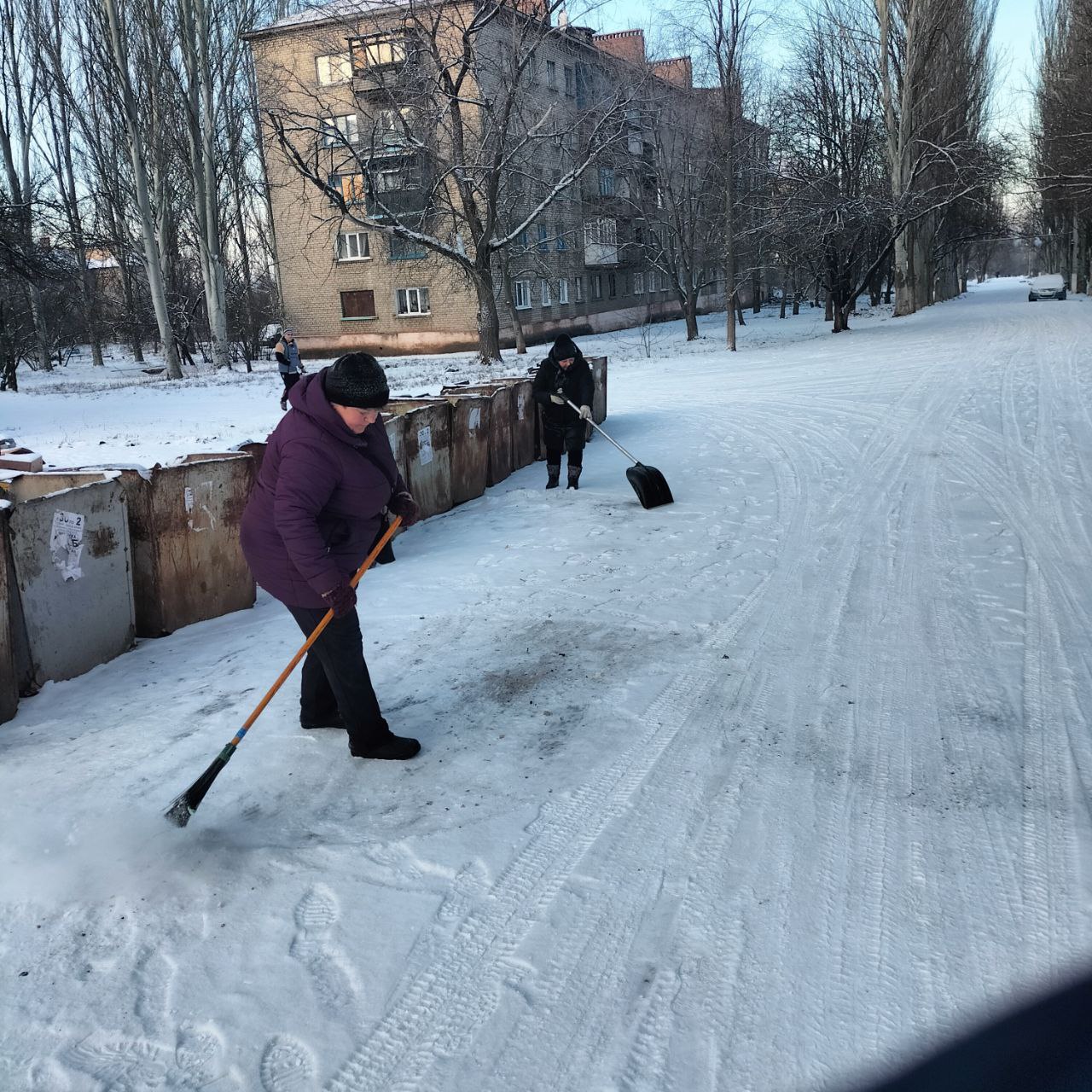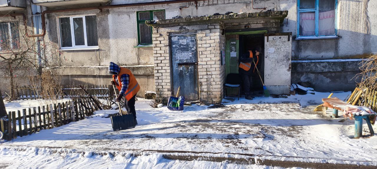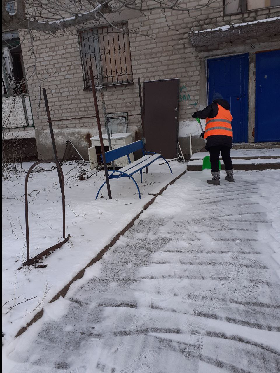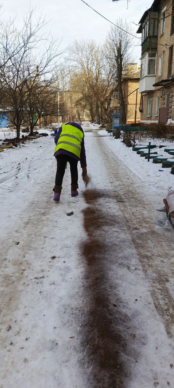 - расчистка снега и посыпка противогололёдными смесями тротуаров, внутриквартальных проездов, террриторий возле остановок общественного транспорта, подходов к жилым домам и ступеней;