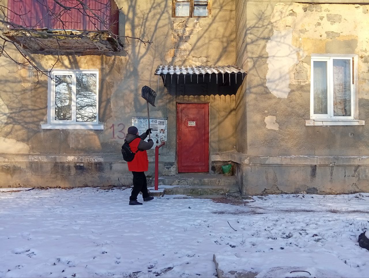 - удаление сосулек с козырьков над подъездами.