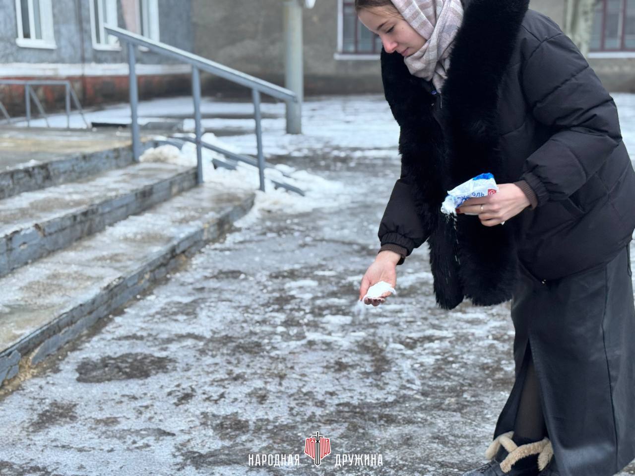 Почти незаметный труд дружинников позволяет горожанам увереннее чувствовать себя на обледенелых улицах и не задумываться о риске падений.