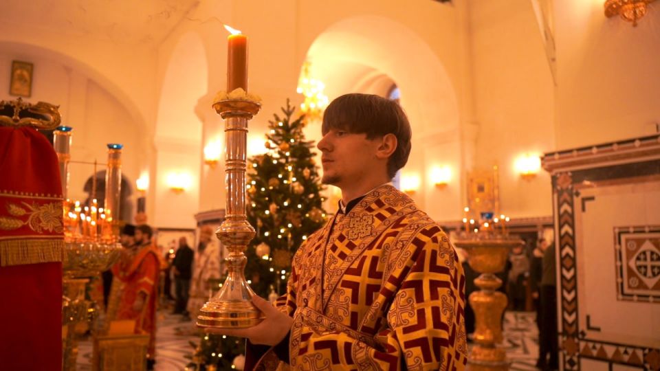 «Сегодня мы приняли участие в службе в нашем соборе, одном из самых главных соборов нашего города. Сегодня в нём собрались разные епархии со всей Донецкой Народной Республики, и эта служба очень запомнилась многим ребятам.