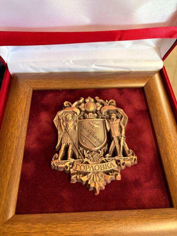 В знак признательности и укрепления дружеских связей между регионами, в финале визита коллективу Центра оперативного контроля ЖК и ДК Кузбасса был торжественно вручен памятный герб Горловки.