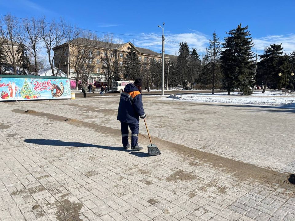 - подметание тротуаров на пл. Победы, пл. Горлова, пл. Ленина, бул. Димитрова;