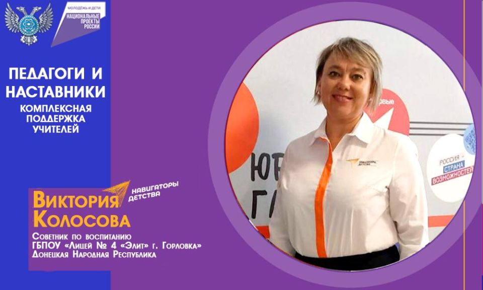 Одним из ярких примеров профессионализма и преданности своему делу является Виктория Валериевна Колосова, советник директора по воспитанию лицея № 4 «Элит» города Горловки.