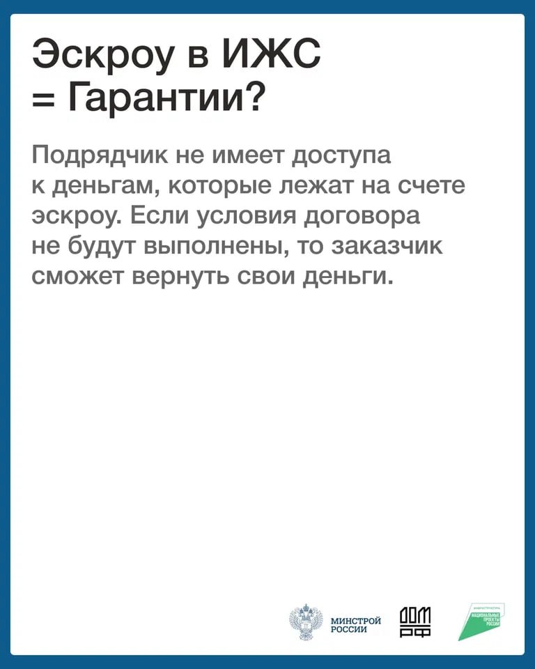 Что такое эскроу счет?Эскроу-счёт — это специальный банковский счёт, на котором хранятся деньги заказчика до завершения строительства.Более подробнее узнать об эскроу-счете можно здесь в информационных материалах.