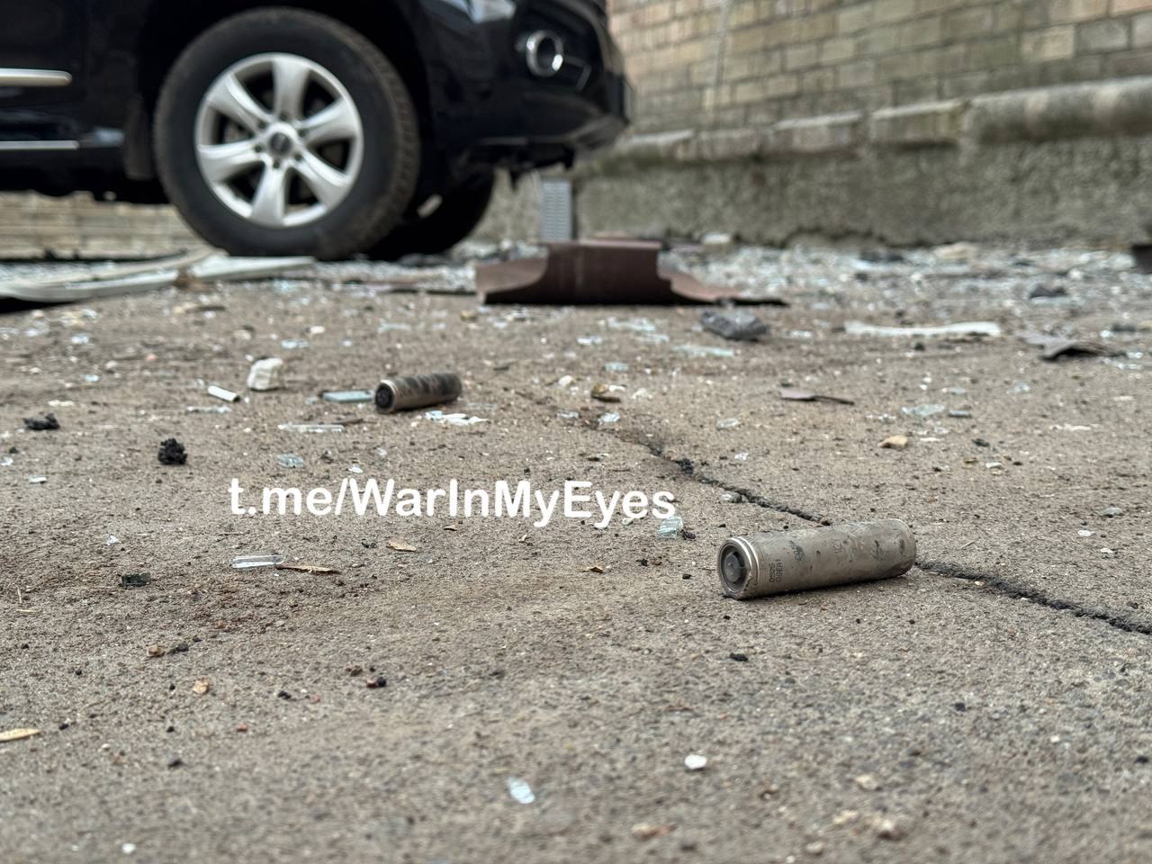 Повреждены легковой автомобиль, а также жилое домостроение, объект гражданской инфраструктуры (административное здание) и два легковых автомобиля в Киевском районе Донецка.