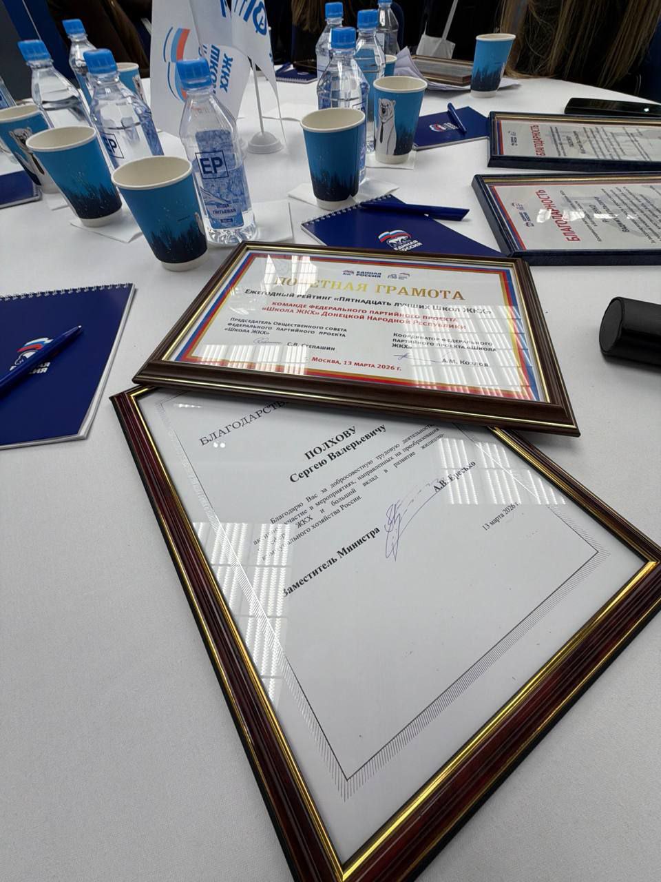 Команда проекта «Школа ЖКХ» в ДНР стала одним из лидеров и вошла в ежегодный рейтинг «Пятнадцать лучших Школ ЖКХ» среди субъектов РФ, по результатам рейтинга отмечена Почётной грамотой.