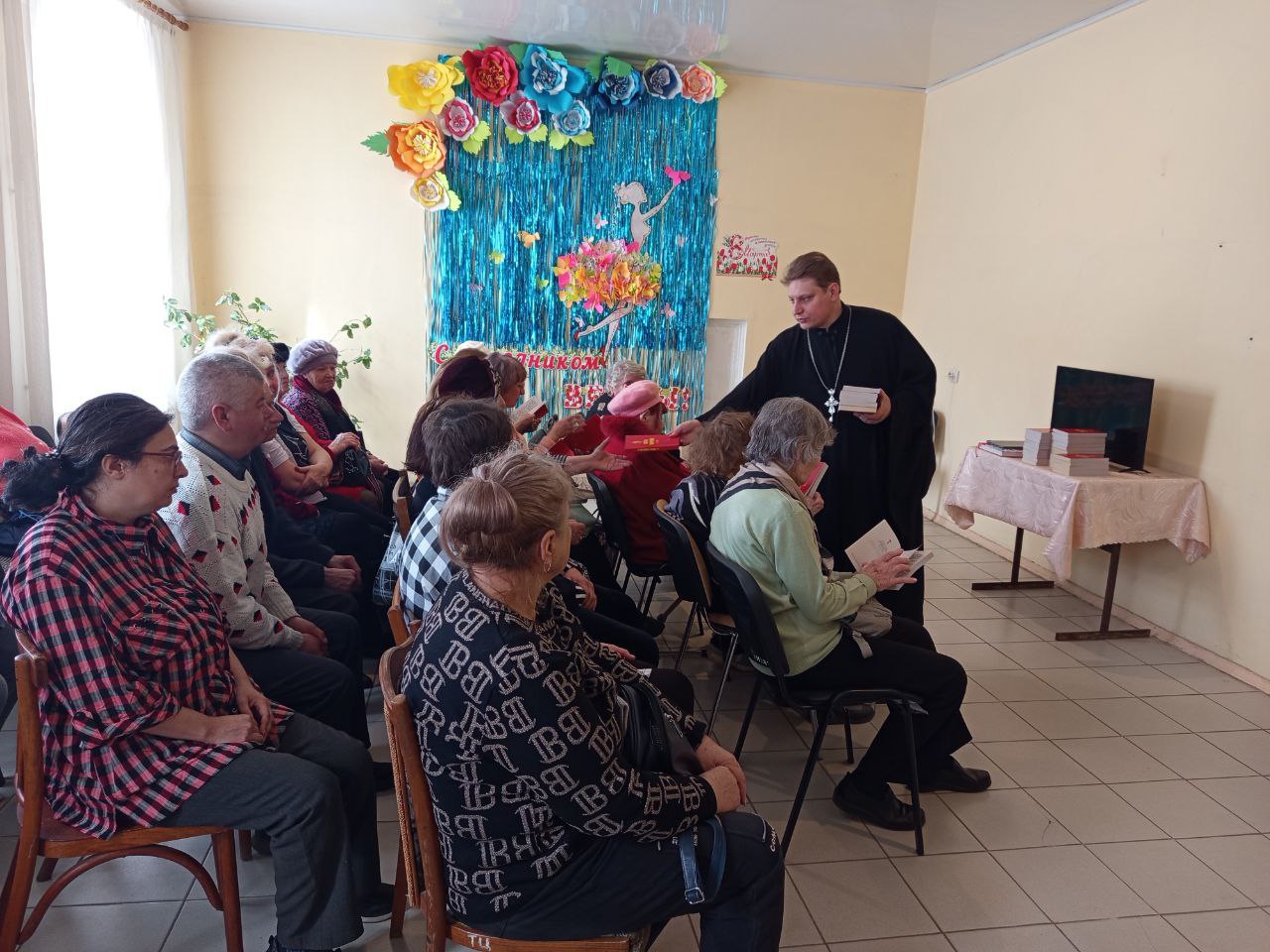 В завершение встречи отец Димитрий вручил всем получателям социальных услуг экземпляры Святого Евангелия. Итоги мероприятия подвели за чаепитием, где участники смогли обсудить услышанное и задать интересующие вопросы.
