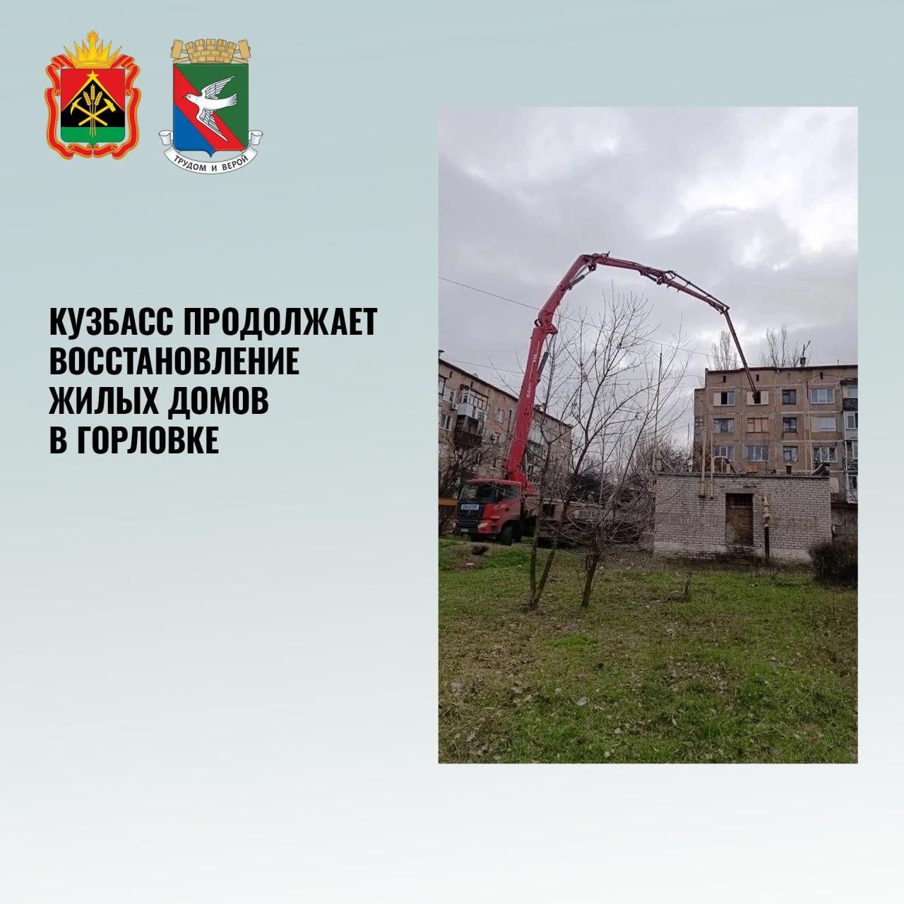 Подрядная организация из Кузбасса продолжает ремонтно-восстановительные работы в многоквартирных домах г.о. Горловка, повреждённых в результате обстрелов.На одном из объектов ведётся заливка бетонной смеси для...