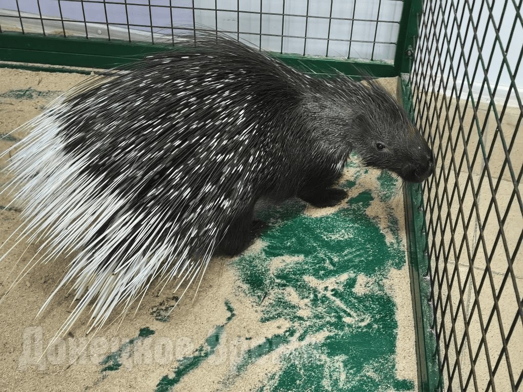 В отдельном вольере отдыхал дикобраз. Его длинные иголки выглядели устрашающе, но сам он оказался дружелюбным и был не прочь, чтобы его погладили. Кстати, погладить и даже подержать на выставке можно было и других экзотов, например, хамелеолиса, паука-птицееда и змей.