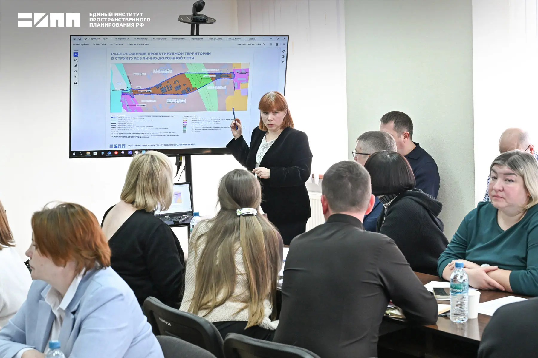 Совещание прошло в Донецке, в Департаменте строительства Минстроя ДНР, под руководством директора Департамента градостроительства, архитектуры и территориального развития Минстроя ДНР Виктории Соковой и директора ЕИПП РФ Дины Саттаровой с участием экспертов Единого института и Минстроя ДНР, а также представителей администраций городских округов Макеевки, Горловки, Докучаевска, Мариуполя и Мангушского муниципального округа.
