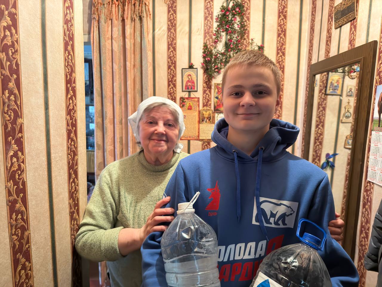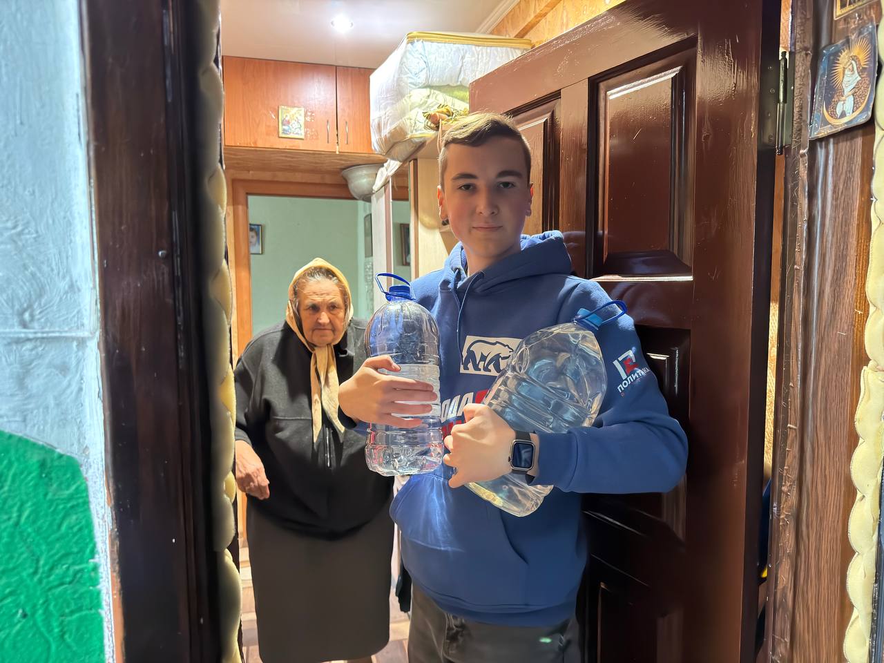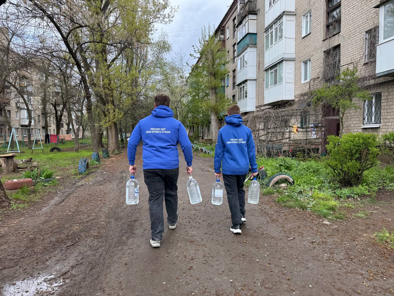 В рамках акции «Молодёжь не оставит в беде» волонтёры разнесли питьевую воду пожилым и маломобильным гражданам Горловки.